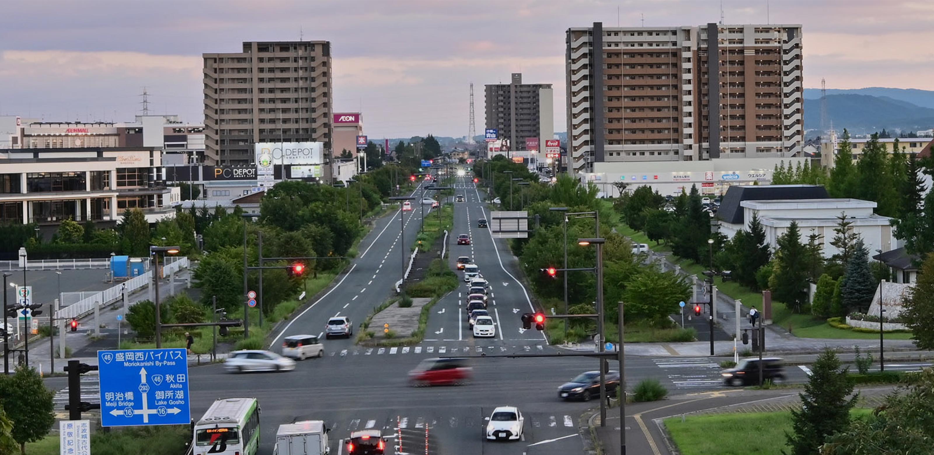幅員約60mのメインストリート杜の道や盛南西バイパスなど、