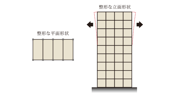 平面形状はスクエアが基本。万一の大地震発生時、局所的に負荷がかかりにくい明快で均整の取れた形状です。
