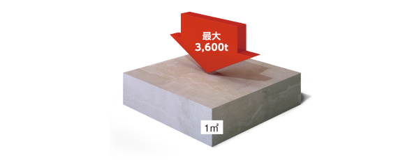 主要構造部のコンクリートに設計基準強度が1㎡あたり最大3,600トン(最小2,700トン)の圧縮に耐える最大36N/m㎡(最小27N/m㎡)の高い強度を持つコンクリートを採用しています。※外構・付属棟は除きます。