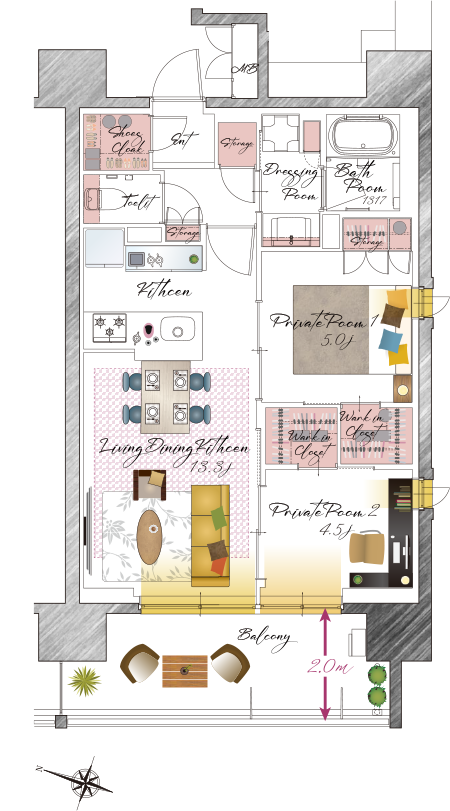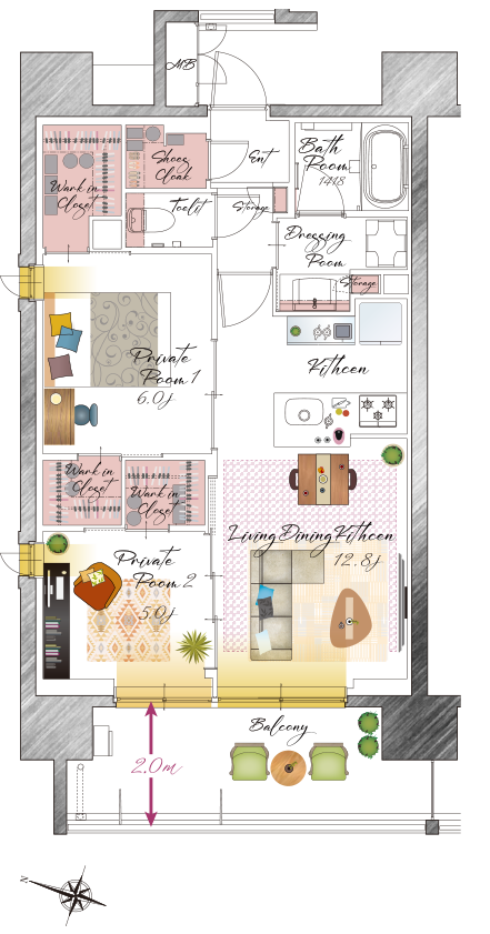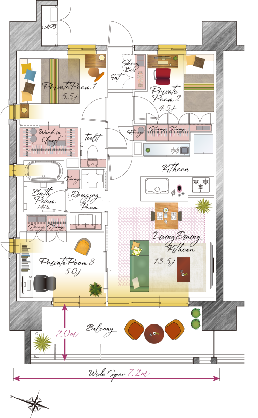 ※掲載のイラスト間取りに描かれている家具レイアウトは一例です。