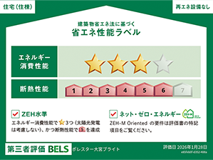 第三者機関によって全ての建築物を対象とした、省エネルギー性能などに関する評価・表示を行う「BELS」において、「ポレスター大宮ブライト」は、エネルギー消費性能で3つ星の評価を取得しました。