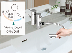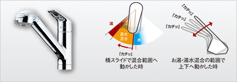 水と湯の使い分けや吐水量をクリック感でお知らせ。ガスのムダな消費を防ぎます。