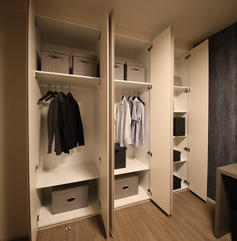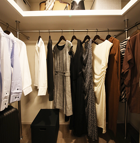 使い易さにこだわったクロゼットは、衣類はもちろん小物類も多く収納できるよう可動棚を設けて、整理しやすさに配慮しています。