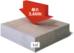 主要構造部のコンクリートに設計基準強度が1㎡あたり最大3,600トン(最小3,000トン)の圧縮に耐える最大36N/m㎡(最小30N/m㎡)の高い強度を持つコンクリートを採用しています。