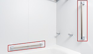 浴槽の出入りをサポートする手すりを設置しています。