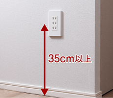 コンセントは、抜き差しをする時のかがむ動作に配慮し、床から35cm以上の高さに設置。コンセントの使い勝手を高めました。