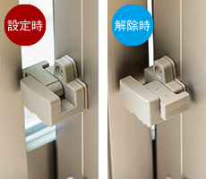 住戸内の引違いサッシに「指詰め防止ストッパー」を設置。サッシを開ける際の指詰め事故を防止します。