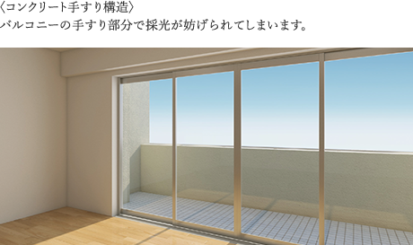 室内の広がりと明るさを演出するバルコニー