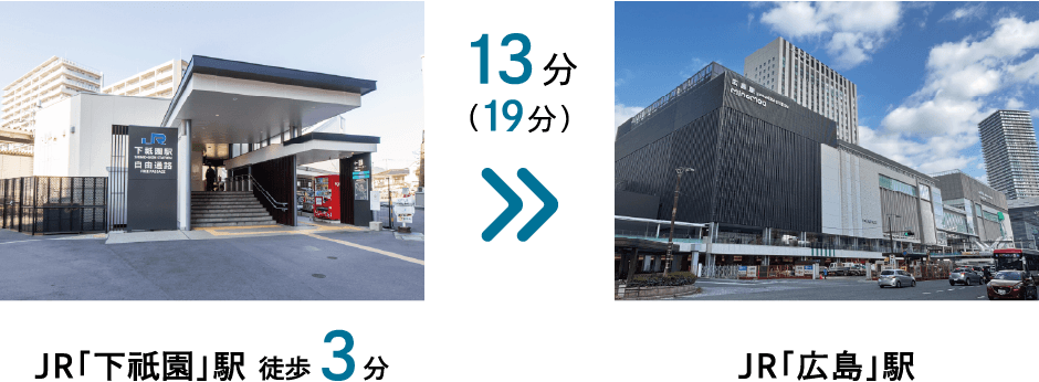 JR「下祇園」駅まで徒歩3分、祇園小学校まで徒歩3分。