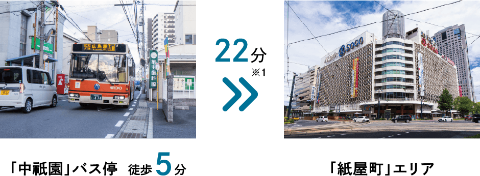 ※1:広島交通利用 「紙屋町」バス停まで