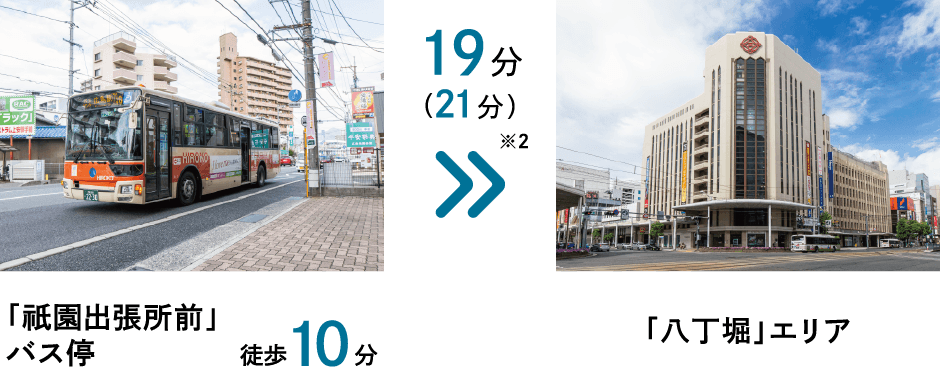 ※2:広島交通・広島電鉄利用 「八丁堀」バス停まで