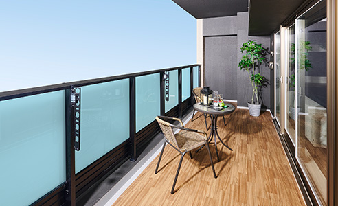 奥行約2.0mのゆとりのスペース。テーブルやチェア、観葉植物などを置いて、気軽にアウトドア気分をお楽しみいただけます。
