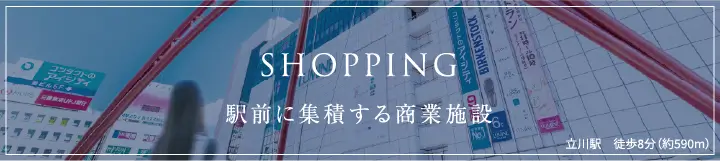 3.GREEN SPRINGS 徒歩16分(約1,230m) 4.立川南通り街並み 徒歩10分(約750m)